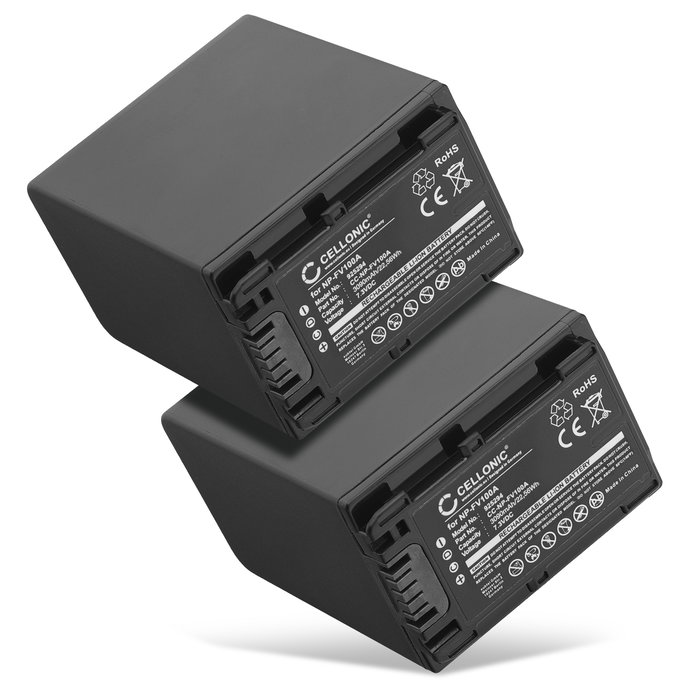 2x Batterie pour Sony HDR CX625, CX250, CX260, CX270, CX410, CX430, CX230, CX220, CX210 NP-FV70A NP-FV50A NP-FV30 NP-FV90 NP-FV100A (3090mAh, 7.2V) de CELLONIC